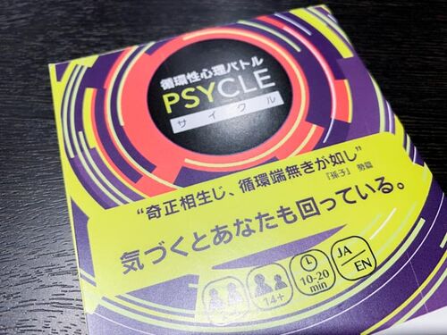 循環性心理バトル PSYCLE『サイクル』 画像引用:循環性心理バトル PSYCLE『サイクル』 – TACTICAL GAMES プレイ人数:2〜4人 対象年齢 :14歳以上 プレイ時間:10〜20分 リンク 「気づくとあなたも回っている」というキャッチコピーを冠したPSYCLE(サイク…