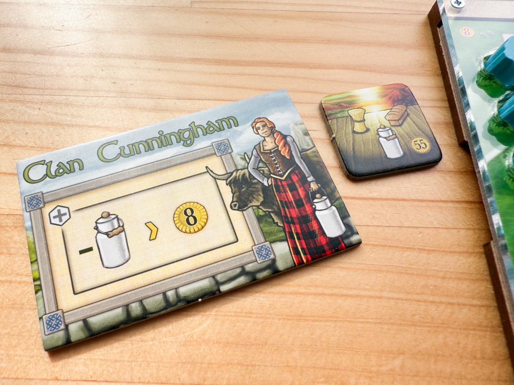 産業革命期の転換点を迎えているスコットランドを舞台にプレイヤーはクラン(氏族)の長となり、生産や貿易を通じて一族の発展と栄光を集めることを目指します。クランズ・オブ・カレドニアは派手さはあまり感じないけどしっとり悩ましいゲームなのですよ。何も分かってなかった頃(今も大差はない)にKickstarterで勢いポチってから、ずっと我が家にあるタイトル。8年経ってもなお変わらず棚に鎮座しているゲームです。
