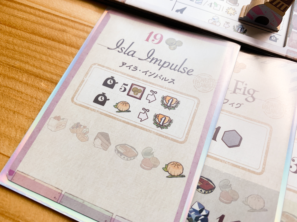 うちばこやタイトルはコンポーネントの完成度がもともと高いことでも有名です。それは初期のタイトルのころから変わらず守られている、うちばこやのこだわりでもあります。Sweet Landsに含まれる個別のコンポーネントの品質が高いのは変わらずなのですが、ゲーム全体の雰囲気といいますか、バランスといいますか、Sweet Landsはきっと遊び終わった卓上の状態をゴールに見据えて、とても丁寧で緻密に、バランスよくデザインされている感じなのです。