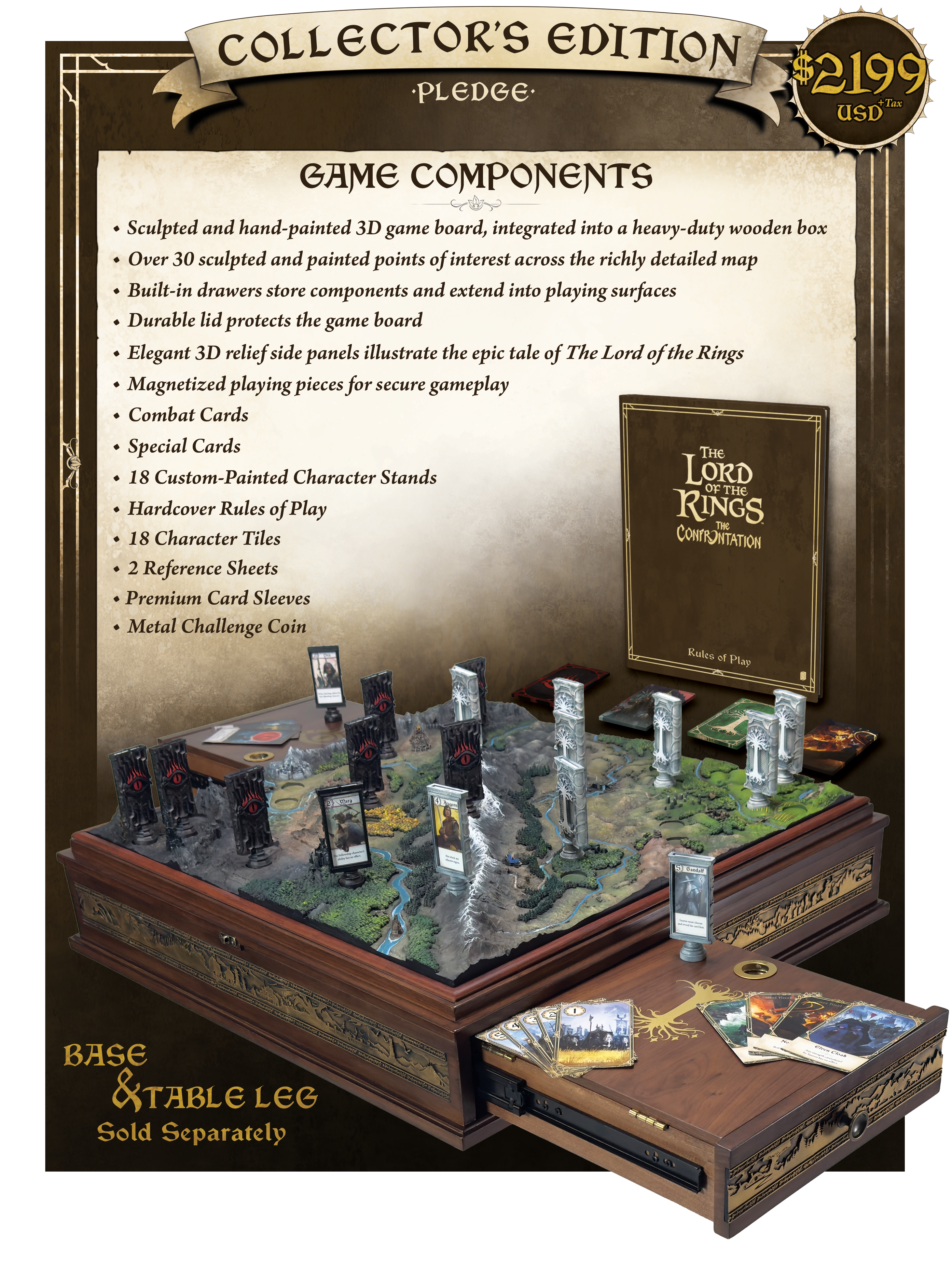 サウロンの軍勢となって指輪を強奪するのか?それとも中つ国の軍勢となって指輪を破壊するのか?指輪物語の壮大なテーマを2人用の対戦ゲームにしたThe Lord of the Rings: The Confrontationのアルティメットエディションなる豪華版のプロジェクト。ほー、デラックスなのかー。くらいの気持ちでみてたら結構ド肝を抜かれるレベルの豪華さでした。
