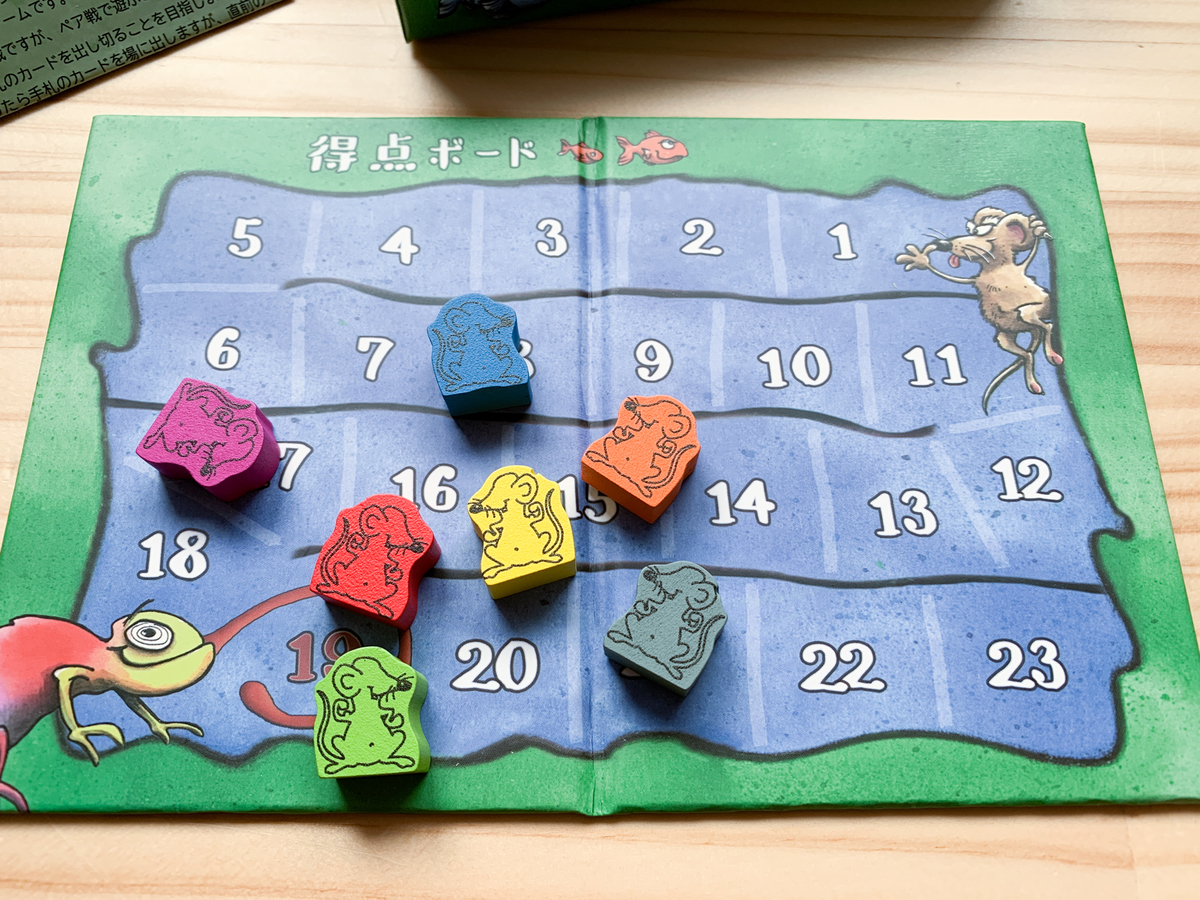 可愛い動物の弱肉強食っぷり、プレイヤーの手札に残るカード、そしてペア戦ルールともなれば自分は何番目に上がるのが一番得点を得られるのか、かなり考え所があちこちに散らばっているカードゲームでした。