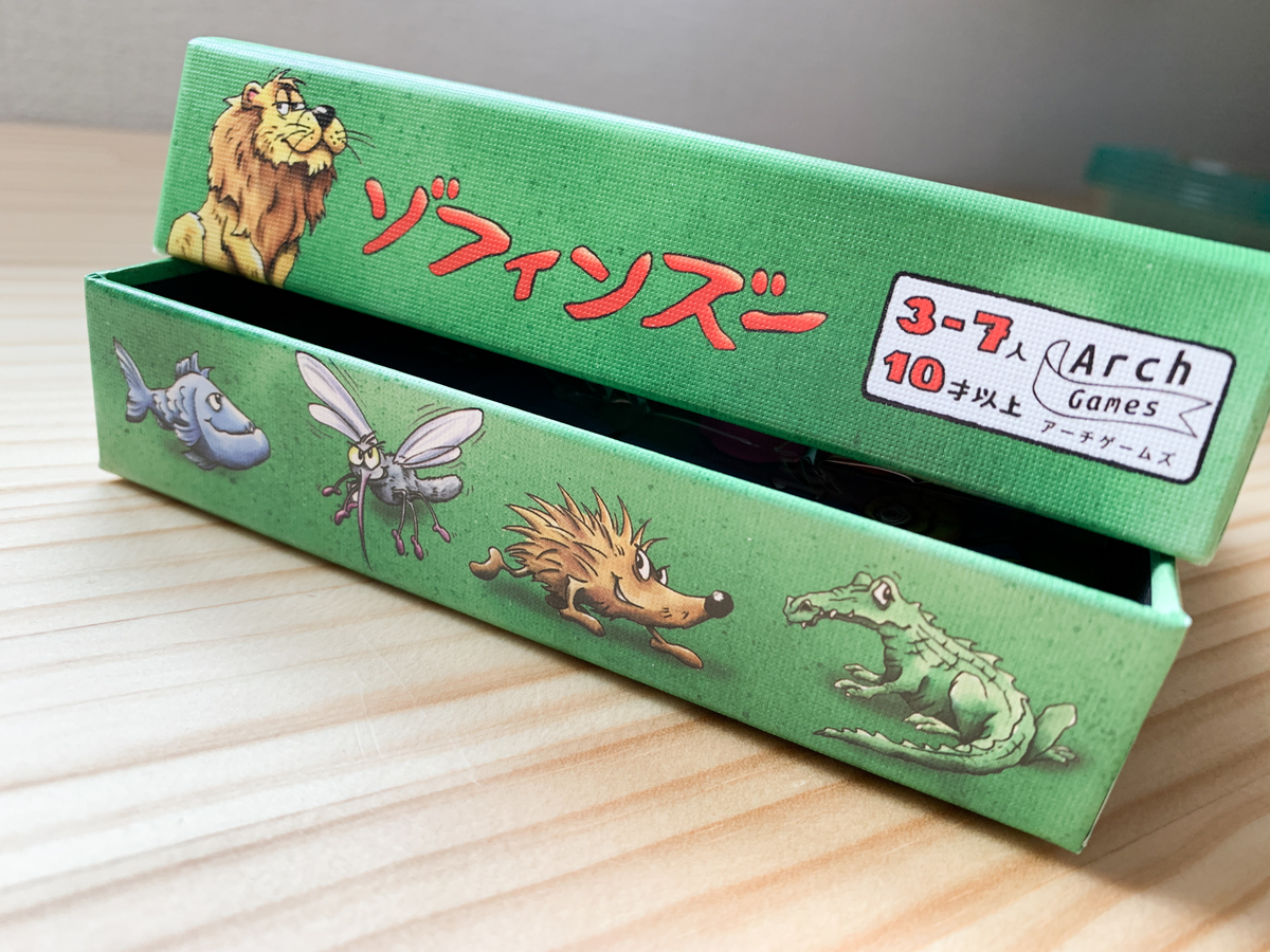 ゾフィンズーは動物たちの食物連鎖がテーマに採用されているため見た目でも分かりやすく遊ぶ敷居を低くしてくれます。ネズミはキツネに食べられ、キツネはライオンやシロクマ、シャチやワニに食べられ....と動物ごとに強弱の関係が変化します。ライオンを負かせるゾウが最強!かと思いきや、ゾウは集団で襲ってくるネズミには勝てず、という弱肉強食の世界。自然界が頭に浮かぶので迷いにくく、みんなでワイワイ遊べるタイトルです。