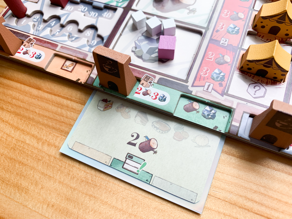 いわゆるハードパスなのでパス後はそのラウンドでは手番は発生しません。スイーツランドではパス時に効果を得ることができるタイルや市民カードが結構登場するので、うまく活用しながら得点を伸ばすのです。