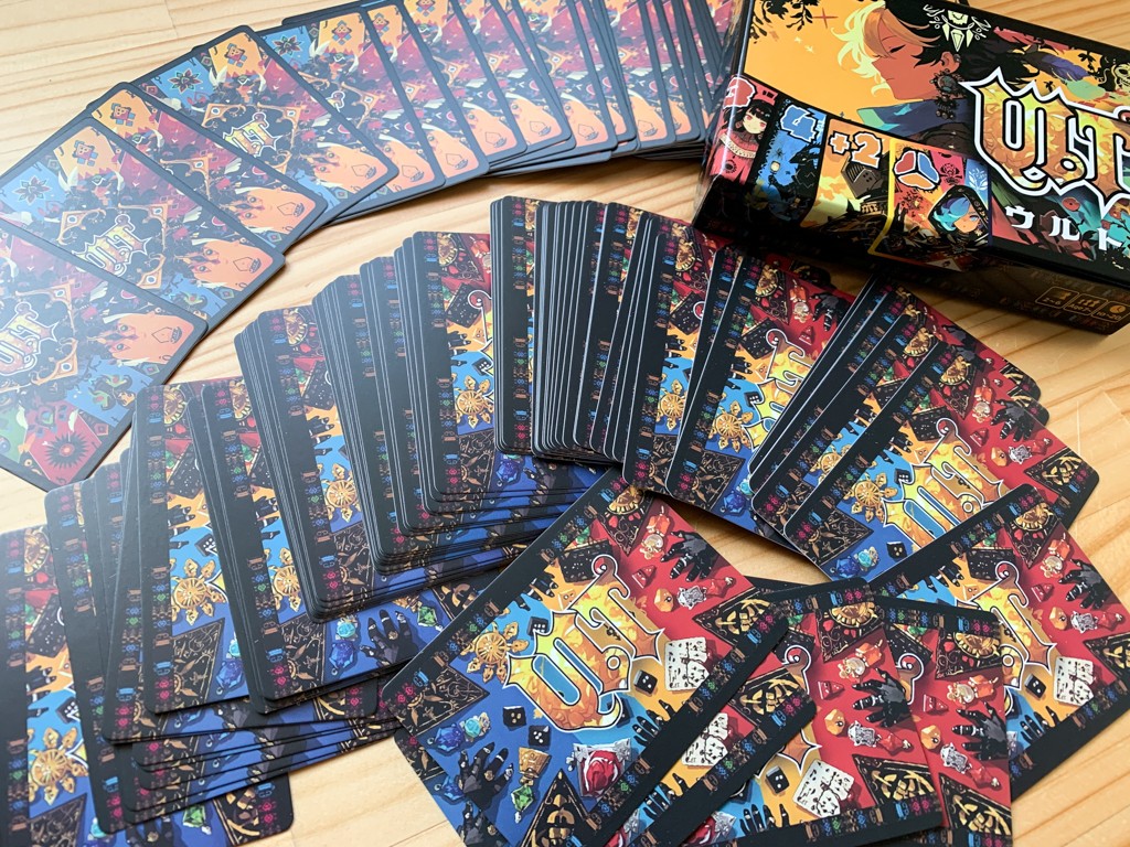 世界観とか背景的な設定もありそうな雰囲気のウルト。ゴーアウト系のボドゲらしく、パッと出してワイワイ遊べるゲームです。軽めなのにリプレイしたくなるゲームで次女はかなり気に入った模様でした。UNOそんなに遊んだことないんだけどウルトは楽しかったな。スリーブに入れて遊びたいなと思ったけど、スリーブ入れたら箱には入らないのが難点かしら。今回は2人で遊びましたが、6人まで一斉に遊べるのでもう少し人数多いと更に盛り上がりそうだな!